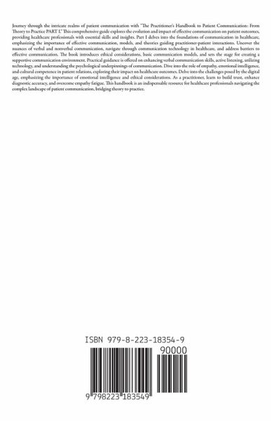 Journey through the intricate realms of patient communication with "The Practitioner's Handbook to Patient Communication: From Theory to Practice PART I." This comprehensive guide explores the evolution and impact of effective communication on patient outcomes, providing healthcare professionals with essential skills and insights. Part I delves into the foundations of communication in healthcare, emphasizing the importance of effective communication, models, and theories guiding practitioner-patient interactions. Uncover the nuances of verbal and nonverbal communication, navigate through communication technology in healthcare, and address barriers to effective communication. The book introduces ethical considerations, basic communication models, and sets the stage for creating a supportive communication environment. Practical guidance is offered on enhancing verbal communication skills, active listening, utilizing technology, and understanding the psychological underpinnings of communication. Dive into the role of empathy, emotional intelligence, and cultural competence in patient relations, exploring their impact on healthcare outcomes. Delve into the challenges posed by the digital age, emphasizing the importance of emotional intelligence and ethical considerations. As a practitioner, learn to build trust, enhance diagnostic accuracy, and overcome empathy fatigue. This handbook is an indispensable resource for healthcare professionals navigating the complex landscape of patient communication, bridging theory to practice.