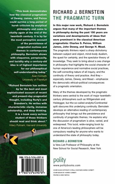 "Richard J. Bernstein argues that many of the important themes in philosophy during the past 150 years are variations and developments of ideas that were prominent in the classical American pragmatists: Charles S. Peirce, William James, John Dewey, and George H. Mead. The pragmatic thinkers reject a sharp dichotomy between subject and object, mind-body dualism, the quest for certainty, and the spectator theory of knowledge. They seek to bring about a sea change in philosophy that highlights the social character of human experience and normative social practices, the self-correcting nature of all inquiry, and the continuity of theory and practice. And they - especially James, Dewey, and Mead - emphasize the democratic ethical-political consequences of a pragmatic orientation. Many of the themes developed by the pragmatic thinkers were central to the work of major twentieth-century philosophers such as Wittgenstein and Heidegger, but the so-called analytic/Continental split obscures this underlying continuity. Bernstein develops an alternative reading of contemporary philosophy that brings out the persistence and continuity of pragmatic themes. He explains why the discussion of pragmatism is alive, varied, and widespread"--Dust jacket.