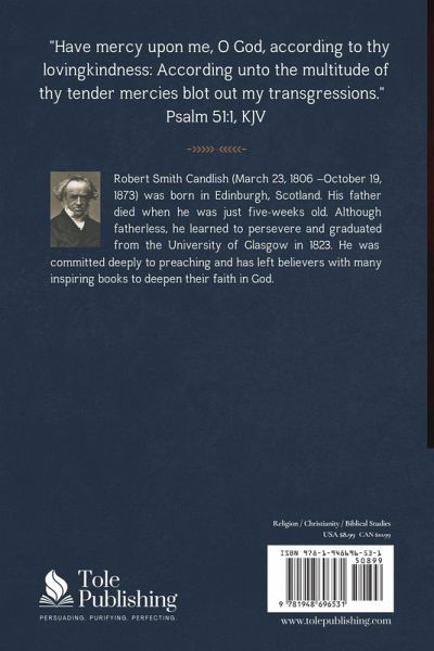 Does your sin break your heart because it is transgression against a holy God? Do you want to know more about how to pray to God when you have sinned and are seeking forgiveness and renewal? This classic book by Robert S. Candlish puts sin and humanity's separation from God into proper perspective. He helps the reader see how ugly iniquity is by using David's prayer of confessing his sin of adultery and murder to understand what a true broken and penitent heart looks like. However, the reader can also expect how Psalm 51 relates to Christ and His sacrifice. Candlish also shows how God through Scripture gives hope in that if one receives His forgiveness by faith, renewal is to be expected.