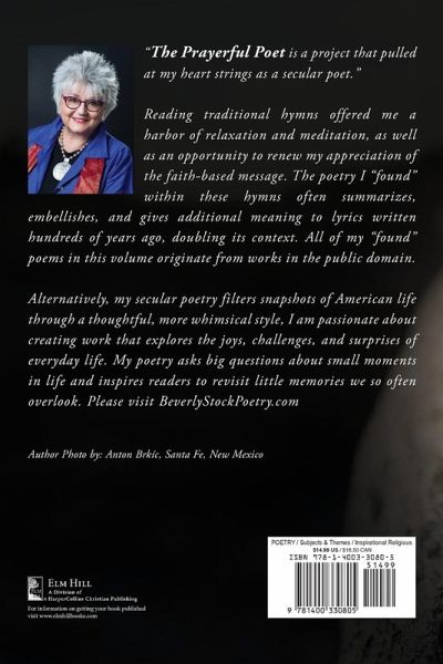 Beverly Stock is a feature writer turned poet from St. Louis, Missouri. Noted for her whimsical, thoughtful style, Beverly is passionate about creating work that explores the joys, challenges, and surprises of everyday life. The Prayerful Poet is her first collection of verse. Brimming with joy, wonder, and tenderness, this stirring volume takes inspiration from traditional Christian hymns and classic spiritual works. Each poem combines Beverly's poetic adaptations with the time-honored hymnal lyrics and finds fresh meaning in traditional songs of praise. A mixture of grand voices and elegiac laments, The Prayerful Poet engages readers with its hopeful perspective, and is a perfect read for anyone who finds beauty in the divine.