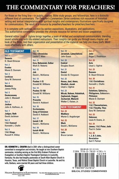 Written BY Preachers and Teachers FOR Preachers and Teachers Combining fresh insights with readable exposition and relatable examples, The Preacher's Commentary will help you minister to others and see their lives transformed through the power of God's Word. Whether preacher, teacher, or Bible study leader--if you're a communicator, The Preacher's Commentary will help you share God's Word more effectively with others. This volume on 1 & 2 Samuel reflects a painstaking analysis of the fine details and broad scope of each passage of the biblical text. Its focus is on making the obscurities of ancient Israelite history understandable to the modern reader. Each volume is written by one of today's top scholars, and includes: Innovative ideas for preaching and teaching God's Word Vibrant paragraph-by-paragraph exposition Impelling real-life illustrations Insightful and relevant contemporary application An introduction, which reveals the author's approach A full outline of the biblical book being covered Scripture passages (using the New King James Version) and explanations The Preacher's Commentary offers pastors, teachers, and Bible study leaders clear and compelling insights into the Bible that will equip them to understand, apply, and teach the truth in God's Word.