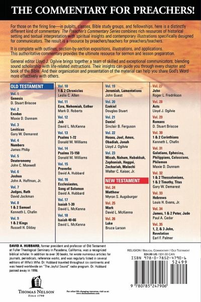 Written BY Preachers and Teachers FOR Preachers and Teachers Combining fresh insights with readable exposition and relatable examples, The Preacher's Commentary will help you minister to others and see their lives transformed through the power of God's Word. Whether preacher, teacher, or Bible study leader--if you're a communicator, The Preacher's Commentary will help you share God's Word more effectively with others. This volume combining commentary on Ecclesiastes and The Song Of Solomon speaks to the profound questions of our day and conveys the truths of these challenging books of the Bible for our contemporary culture. Each volume is written by one of today's top scholars, and includes: Innovative ideas for preaching and teaching God's Word Vibrant paragraph-by-paragraph exposition Impelling real-life illustrations Insightful and relevant contemporary application An introduction, which reveals the author's approach A full outline of the biblical book being covered Scripture passages (using the New King James Version) and explanations The Preacher's Commentary offers pastors, teachers, and Bible study leaders clear and compelling insights into the Bible that will equip them to understand, apply, and teach the truth in God's Word.