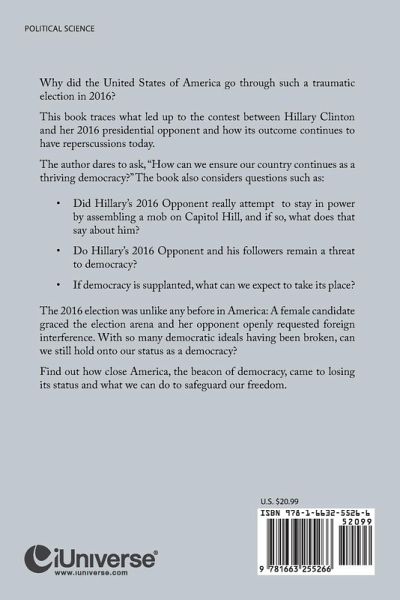 Why did the United States of America go through such a traumatic election in 2016? This book traces what led up to the contest between Hillary Clinton and her opponent and how its outcome continues to have repercussions today. The author dares to ask, "How can we ensure our country continues as a thriving democracy?" It also considers questions such as: ¿ Did Trump really attempt to stay in power by assembling a mob on Capitol Hill, and if so, what does that say about him? ¿ Do Trump and his followers remain a threat to democracy? ¿ If democracy is supplanted, what can we expect to take its place? The 2016 election was unlike any before in America: A female candidate graced the election arena and her opponent openly requested foreign interference. With so many democratic ideals having been broken, can we still hold onto our status as a democracy? Find out how close America, the beacon of democracy, came to losing its status and what we can do to safeguard our freedom.