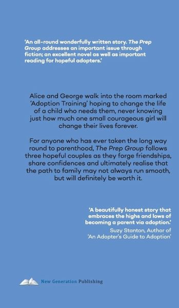 When all you've ever dreamed of takes everything you've got Alice and George walk into the room marked 'Adoption Training' hoping to change the life of a child who needs them, never knowing just how much one small courageous girl will change their lives forever. For anyone who has ever taken the long way round to parenthood, The Prep Group follows three hopeful couples as they forge friendships, share confidences and ultimately realise that the path to family may not always run smooth, but will definitely be worth it. Praise for The Prep Group 'Relatable and relevant, honest and heartfelt. A must-read for all those on an adoption journey of their own.' (Rosemary Lucas, Author of 'The Family Fairies'). 'An all-round wonderfully written story. The Prep Group addresses an important issue through fiction; an excellent novel as well as important reading for hopeful adopters'. 'A beautifully honest story that embraces the highs and lows of becoming a parent via adoption.' (Suzy Stanton, Author of 'An Adopter's Guide to Adoption'.)