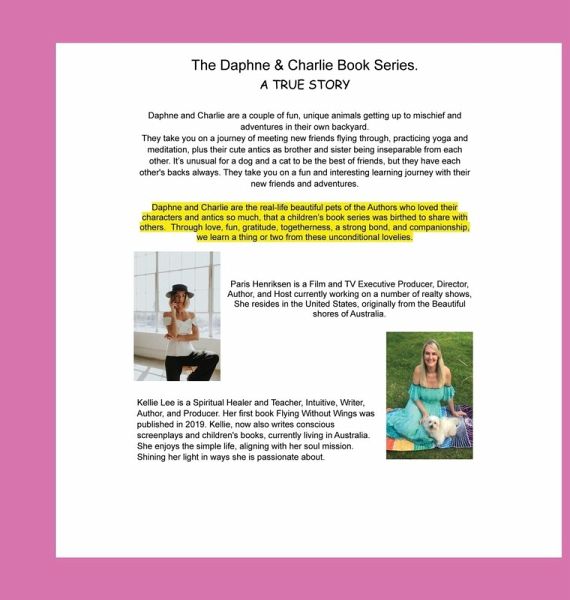 Daphne and Charlie are a couple of fun, unique animals getting up to mischief and adventures in their own backyard. They take you on a journey of meeting new friends flying through, practicing yoga and meditation, plus their cute antics as brother and sister being inseparable from each other. It's unusual for a dog and a cat to be the best of friends, but they have each other's backs always. They take you on a fun and interesting learning journey with their new friends and adventures.