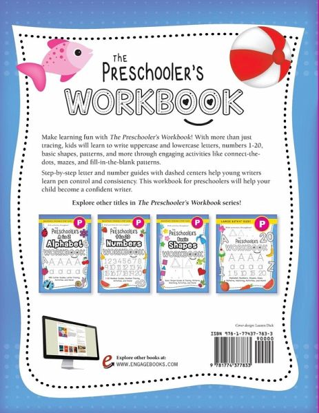 Step-by-step Letter, Number, and Shape Guides! Make learning fun with The Preschooler's Workbook! With more than just tracing, kids will learn to write uppercase and lowercase letters, numbers 1-20, basic shapes, patterns, and more through engaging activities like connect-the-dots, mazes, and fill-in-the-blank patterns. Step-by-step letter and number guides with dashed centers help young writers learn pen control and consistency. This workbook for preschoolers will help your child become a confident writer.