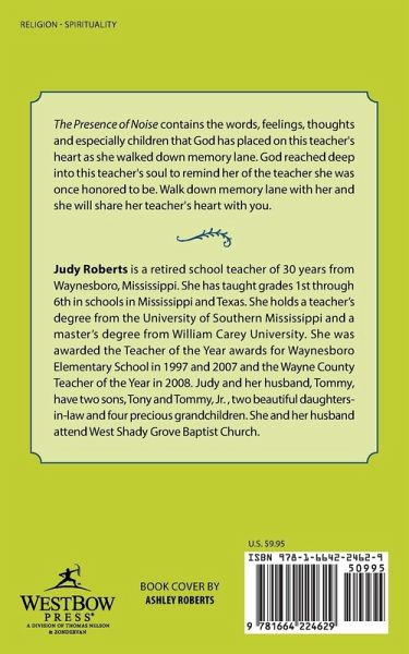The Presence of Noise contains the words, feelings, thoughts and especially children that God has placed on this teacher's heart as she walked down memory lane. God reached deep into this teacher's soul to remind her of the teacher she was once honored to be. Walk down memory lane with her and she will share her teacher's heart with you.