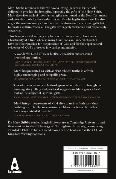 In his new book, Mark Stibbe reminds us that we have a loving, generous Father who delights to give his children gifts, especially the gifts of the Holy Spirit. Mark describes each of the spiritual gifts mentioned in the New Testament and provides tools for the reader to identify which gifts they have. He also urges the contemporary church not to dial down on the spiritual gifts but to create a culture where all the gifts are eagerly welcomed and responsibly stewarded. This book is a vital rallying cry for a return to genuine, charismatic Christianity at a time when so many Christians and indeed churches have lost their passion for the presence of God and for the supernatural evidences of God's presence in worship and mission.