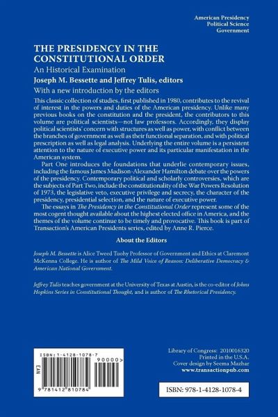 This classic collection of studies, first published in 1980, contributes to the revival of interest in the powers and duties of the American presidency. Unlike many previous books on the constitution and the president, the contributors to this volume are political scientists, not law professors. Accordingly, they display political scientists' concern with structures as well as power, with conflict between the branches of government as well as their functional separation, and with political prescription as well as legal analysis. Underlying the entire volume is a persistent attention to the nature of executive power and its particular manifestation in the American system. Part One introduces the foundations that underlie contemporary issues, including the famous James Madison-Alexander Hamilton debate over the powers of the presidency. Contemporary political and scholarly controversies, which are the subjects of Part Two, include the constitutionality of the War Powers Resolution of 1973, the legislative veto, executive privilege and secrecy, the character of the presidency, presidential selection, and the nature of executive power. The essays in The Presidency in the Constitutional Order represent some of the most cogent thought available about the highest elected office in America, and the themes of the volume continue to be timely and provocative.