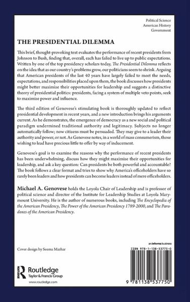 This brief, thought-provoking text evaluates the performance of recent presidents from Johnson to Bush, finding that, overall, each has failed to live up to public expectations