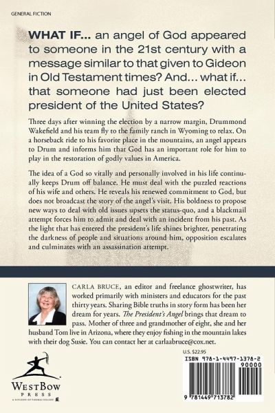 When their candidate for president dies from a massive heart attack on the eve of the party's convention, the committee scrambles to find a replacement. They agree that the cowboy charm of Drummond Wakefield, junior senator from Wyoming, is their best bet. Appalled at first at the idea of becoming a "replacement" candidate, and with only hours to make a decision, Drum weighs the options and decides to go for it. A major factor in his decision is the opportunity to run a campaign with no negative or derisive comments about the opposition. This creates problems for the party chairman, but Drum stands firm. Three days after winning the election by a narrow margin, he and his team fly to the family ranch in Wyoming to relax. On a horseback ride to his favorite place in the mountains, an angel appears to Drum and informs him that God has an important role for him to play in the restoration of godly values in America. The idea of a God so vitally and personally involved in his life continually keeps Drum off balance. He must deal with the puzzled reactions of his wife and others. He reveals his renewed commitment to God, but does not broadcast the story of the angel's visit. His boldness to propose new ways to deal with old issues upsets the status-quo, and a blackmail attempt forces him to admit and deal with an incident from his past. As the light that has entered the president's life shines brighter, penetrating the darkness of people and situations around him, opposition escalates and culminates with an assassination attempt.