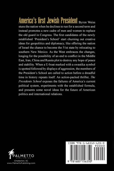 America's first Jewish President Byron Weiss stuns the nation when he declines to run for a second term and instead promotes a new cadre of men and women to replace the old guard in Congress. The first candidates of the newly established 'President's School' start churning out creative ideas for geopolitics and diplomacy, like offering the nation of Israel the chance to become the 51st state by relocating to southern New Mexico. As the West embraces the changes, longing for the possibility of an end to conflict in the Middle East, Iran, China and Russia plot to destroy any hope of peace and stability. When a U-boat marked with a swastika symbol is spotted followed by displays of aggression, the members of the President's School are called to action before a dreadful time in history repeats itself. An action-packed thriller, The Presidents School exposes the failures of America's current political system, experiments with the established formula, and presents some novel ideas for the future of American politics and international relations.