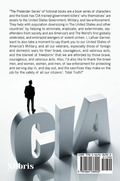 "The Pretender Series' of fictional books are a book series of characters and the book has CIA trained government killers' who themselves' are assets to the United States Government, Military, and law enforcement. They help with population downsizing in The United States and other countries' by helping to eliminate, eradicate, and exterminate, sex-offenders from society and are America's and The World's first globally celebrated, and embraced avengers of violent crimes. I, Lafluer Garnier, want to also take a moment to say thank you to our United States of America's Military, and all our veterans, especially those of foreign and domestic wars for their brave, courageous, and valorous acts, and the blanket of freedoms' that we are afforded by those brave, courageous, and valorous acts. Also, I'd also like to thank the brave men, and women, women, and men, of law enforcement for protecting and serving day in, and day out, and the sacrifices they make on the job for the safety of all our citizens'. Total Truth!"