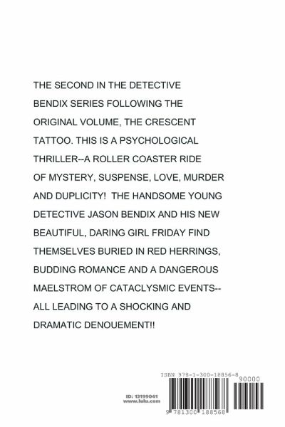 The second in the Detective Bendix Mystery series. This is a psychological thriller--a roller coaster ride of mystery, suspense, love, murder and duplicity!! The young handsome Detective Jason Bendix and his new beautiful, daring Girl Friday become embroiled in scandal, murder, psychological derring-do and romance--all leading to a dramatically unforeseen and shocking denouement!!!