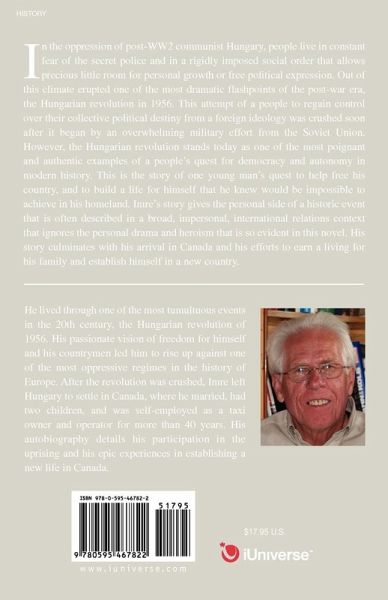 In the oppression of post-WW2 communist Hungary, people live in constant fear of the secret police and in a rigidly imposed social order that allows precious little room for personal growth or free political expression. Out of this climate erupted one of the most dramatic flashpoints of the post-war era, the Hungarian revolution in 1956. This attempt of a people to regain control over their collective political destiny from a foreign ideology was crushed soon after it began by an overwhelming military effort from the Soviet Union. However, the Hungarian revolution stands today as one of the most poignant and authentic examples of a people's quest for democracy and autonomy in modern history. This is the story of one young man's quest to help free his country, and to build a life for himself that he knew would be impossible to achieve in his homeland. Imre's story gives the personal side of a historic event that is often described in a broad, impersonal, international relations context that ignores the personal drama and heroism that is so evident in this novel. His story culminates with his arrival in Canada and his efforts to earn a living for his family and establish himself in a new country.