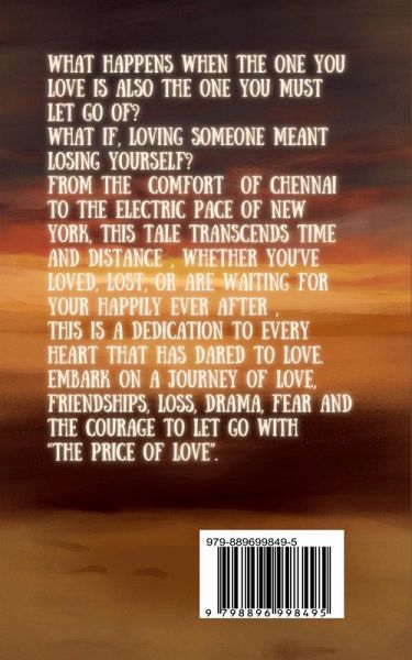 What happens when the one you love is also the one you must let go of? What if, in loving someone, you lose yourself? From the bustling streets of Chennai to the soaring skyscrapers of New York, this tale will take you on a rollercoaster of emotions. Whether you've loved, lost, or are waiting for your own happily-ever-after, this book is a tribute to every heart that has dared to love. Turn the page, and embark on a journey of love, loss, and the courage to let go.