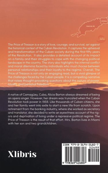 The Price of Treason is a story of love, courage, and survival, set against the historical context of the Cuban Revolution. It captures the upheaval and transformation of the Cuban society during the first fifty years of the Revolution. It also provides a detailed account of its impact on a family and their struggles to cope with the changing political landscape in the country. The story also highlights the internal conflict and moral dilemma faced by individuals who must choose between personal relationships and their loyalty to the regime. Overall, The Price of Treason is not only an engaging read, but a vivid glimpse at the challenges faced by the Cuban people. It is a compelling narrative that raises thought-provoking questions about the nature of power, loyalty, and personal freedom.