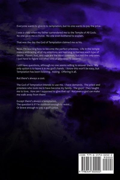 Everyone wants to give in to temptation, but no one wants to pay the price. I was a child when my father surrendered me to the Temple of All Gods. No one gave me a choice. No one even bothered to explain. I was simply tossed aside, unwanted. That was the day the God of Temptation claimed me as his. Now, I'm studying how to become the perfect priestess. Life in the temple means embracing my emotions and learning to harness each type of desire. Power, fear, lust, and rage are the most common, but not the only ones. Each has a power. Each has its place. I just have to figure out which kind of priestess I'll become. Before I decide, I have questions - yet no one seems willing to give me answers. My only option is to leave it in my god's hands. This won't be easy, and my instructors think I'm a fool, but Temptation has been listening. Asking. Offering it all. In exchange, he intends to use me. I have demands. The priest and priestess who took me in have become my family. The guys? They taught me to love. How am I supposed to give this up? Why should I? Not even a god can make me walk away from them! All I have to do is stand my ground. In this temple, there's always a temptation. The question is if I'm stubborn enough to resist... Or brave enough to pay a god's price.