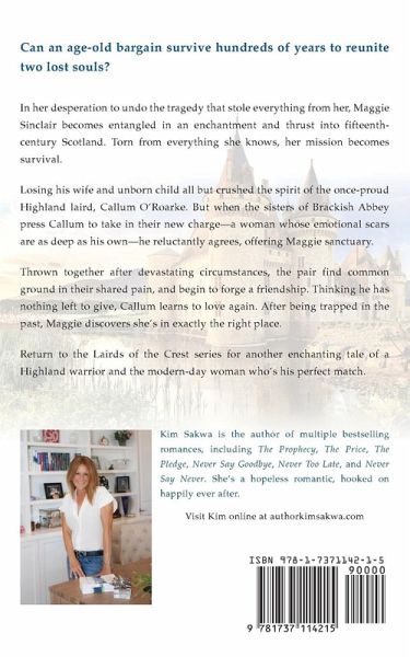 Can an age-old bargain survive hundreds of years to reunite two lost souls? In her desperation to undo the tragedy that stole everything from her, Maggie Sinclair becomes entangled in an enchantment and thrust into fifteenth-century Scotland. Torn from everything she knows, her mission becomes survival. Losing his wife and unborn child all but crushed the spirit of the once-proud Highland warrior, Callum O'Roarke. But when the sisters of Brackish Abbey press Callum to take in their new charge-a woman whose emotional scars are as deep as his own-he reluctantly agrees, offering Maggie sanctuary. Thrown together after devastating circumstances, the pair find common ground in their shared pain and begin to forge a friendship. Thinking he has nothing left to give, Callum learns to love again. After being trapped in the past, Maggie discovers she's in exactly the right place. Return to the Highland Lairds of the Crest series for another enchanting tale of a Highland warrior and the modern-day woman who's his perfect match.