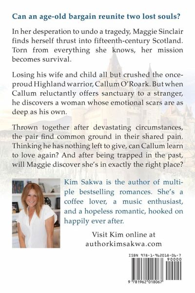 Can an age-old bargain survive hundreds of years to reunite two lost souls? In her desperation to undo the tragedy that stole everything from her, Maggie Sinclair becomes entangled in an enchantment and thrust into fifteenth-century Scotland. Torn from everything she knows, her mission becomes survival. Losing his wife and unborn child all but crushed the spirit of the once-proud Highland warrior, Callum O'Roarke. But when the sisters of Brackish Abbey press Callum to take in their new charge-a woman whose emotional scars are as deep as his own-he reluctantly agrees, offering Maggie sanctuary. Thrown together after devastating circumstances, the pair find common ground in their shared pain and begin to forge a friendship. Thinking he has nothing left to give, Callum learns to love again. After being trapped in the past, Maggie discovers she's in exactly the right place. Return to the Highland Lairds of the Crest series for another enchanting tale of a Highland warrior and the modern-day woman who's his perfect match.