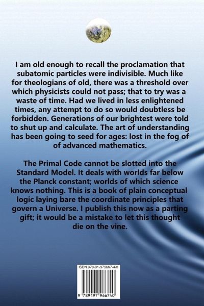 The art of understanding has been going to seed for ages; long lost in the fog of advanced mathematics. The Primal Code Theory deals with layers of unknown worlds far below the Planck constant. The Primal Code does not infringe on a Standard Model that is totally unaware of any hidden principles serving as its foundation; its painstakingly constructed mathematical model of particle physics, an irrefutable edifice of human ingenuity is unfortunately built on the wrong kind of quantum sand. The Primal Code is based on the behavior of a corporeal primal atom split out of zero with an adverse twin atom. It lays out a handful of principles on how and why a primal particle with no inherent internal qualities (except its relation to zero) can cause identical random splits. The primal atom is all there is. It has no energy in any sense of the word. By splits, it can through proliferate and gather in clouds but as the smallest Universal unit, it cannot project any external effects across a void. It does however have a unique coordinate relation to other atoms, a coordinate system relative to any linear Universal movement and rotation. These coordinates are not really an inherent property of atoms. The Primal Code lays out a handful of inviolable principles that govern this world, a blend of parental and newborn coordinates; the only thing keeping the Universe going. The conceptual Primal Code explains the nature of material systems with duality of mass and movement where collective primal interactions lead to all the different faces of primal energy that reach us sifted through many layers of material systems that warp them like funny mirrors reflecting our faces. The Primal Code takes you from the smallest Big Bang ever conceived through formation of gargantuan globular Mattrons of 10912 primal particles built of equal number of primal matter and antimatter atoms in a salient blend (which is which does not matter). The immense Mattrons are absurdly smaller than the Planck constant and are hardly ever split into two adverse singular Mattrons that are electromagnetic photons but it happens occasionally with interesting consequences. This book tells you why globular neutral Hydrons form of 10228 Mattrons and shows how Hydrons exchange primal emission from the rare primal splits. Neutrons, Protons, Electrons and even Neutrinos are all Hydrons that can communicate by rarified coronas of singular mattrons. This book shows what Gravity is and explains the Gravitational Constant. It illustrates the Strong force and electromagnetic wavelength and frequency and reasons for photoelectric effects and photon absorption. The hard thing for the reader is to lose the baggage of a lifetime and travel light. All the inviolable logic is built solely on the Primal code. It is not an accessory to the Standard Model but an entirely self-contained theory of matter and antimatter. There is no help to be had elsewhere. The one question the Primal Code cannot answer as its material layers peek above the parapet of the Planck constant is why its garbled material world, of which the Standard Model knows nothing, looks exactly like our Universe with all its natural laws. Perhaps in time, the Primal Code can provide a firmer foundation for the Standard Model of particle physics. The conceptual illustrations of the Primal Code allow you to grasp the elegant organization of a Universe.