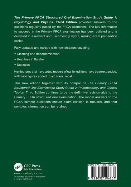 The Primary FRCA Structured Oral Examination Study Guide 1: Physiology and Physics 3e provides answers to the questions regularly posed by the FRCA examiners. The key information to succeed in the Primary FRCA examination has been collated and is delivered it in a relevant and user-friendly layout, making exam preparation easier.
