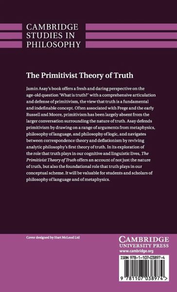 Jamin Asay's book offers a fresh and daring perspective on the age-old question 'What is truth?', with a comprehensive articulation and defence of primitivism, the view that truth is a fundamental and indefinable concept. Often associated with Frege and the early Russell and Moore, primitivism has been largely absent from the larger conversation surrounding the nature of truth. Asay defends primitivism by drawing on a range of arguments from metaphysics, philosophy of language and philosophy of logic, and navigates between correspondence theory and deflationism by reviving analytic philosophy's first theory of truth. In its exploration of the role that truth plays in our cognitive and linguistic lives, The Primitivist Theory of Truth offers an account of not just the nature of truth, but the foundational role that truth plays in our conceptual scheme. It will be valuable for students and scholars of philosophy of language and of metaphysics.