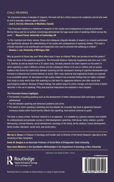 A CHOICE Outstanding Academic Title 2014! Why do parents hit those they love? What effect does it have on children? What can be done to end this pattern? These are some of the questions explored in The Primordial Violence. Featuring longitudinal data from over 7,000 U.S. families as well as results from a 32 nation study, the book presents the latest research on the extent to which spanking is used in different cultures and the subsequent effects of its use on children and on society. Evidence that shows the relationship between spanking and the subsequent slowing of cognitive development and…mehr