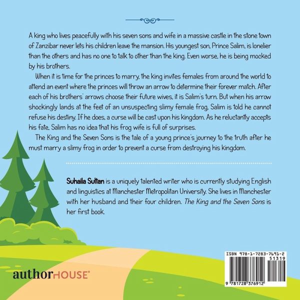A king who lives peacefully with his seven sons and wife in a massive castle in the stone town of Zanzibar never lets his children leave the mansion. His youngest son, Prince Salim, is lonelier than the others and has no one to talk to other than the king. Even worse, he is being mocked by his brothers. When it is time for the princes to marry, the king invites females from around the world to attend an event where the princes will throw an arrow to determine their forever match. After each of his brothers' arrows choose their future wives, it is Salim's turn. But when his arrow shockingly lands at the feet of an unsuspecting slimy female frog, Salim is told he cannot refuse his destiny. If he does, a curse will be cast upon his kingdom. As he reluctantly accepts his fate, Salim has no idea that his frog wife is full of surprises. The King and the Seven Sons is the tale of a young prince's journey to the truth after he must marry a slimy frog in order to prevent a curse from destroying his kingdom.