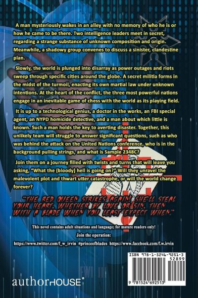 A man mysteriously wakes in an alley with no memory of who he is or how he came to be there. Two intelligence leaders meet in secret, regarding a strange substance of unknown composition and origin. Meanwhile, a shadowy group convenes to discuss a sinister, clandestine plan. Slowly, the world is plunged into disarray as power outages and riots sweep through specific cities around the globe. A secret militia forms in the midst of the turmoil, enacting its own martial law under unknown intentions. At the heart of the conflict, the three most powerful nations engage in an inevitable game of chess with the world as its playing field. It is up to a technological genius, a doctor in the works, an FBI special agent, an NYPD homicide detective, and a man about which little is known. Such a man holds the key to averting disaster. Together, this unlikely team will struggle to answer significant questions, such as who was behind the attack on the United Nations conference, who is in the background pulling strings, and what is Sample 2348C? Join them on a journey filled with twists and turns that will leave you asking, "What the (bloody) hell is going on?" Will they unravel the malevolent plot and thwart utter catastrophe, or will the world change forever?
