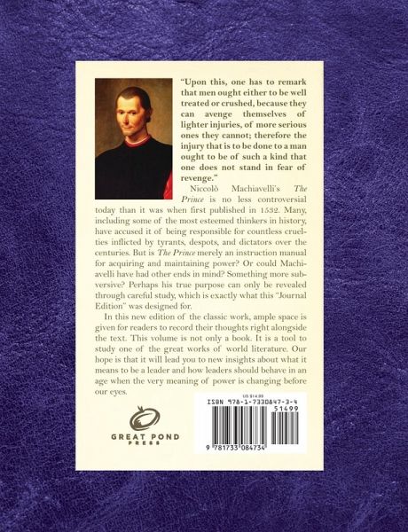 Niccolò Machiavelli's The Prince is no less controversial today than it was when first published in 1532. It was shocking at that time and is still condemned by some as teaching evil. Many, including some of the most esteemed thinkers in history, have accused it of being responsible for countless cruelties inflicted by tyrants, despots, and dictators over the centuries. But is The Prince merely an instruction manual for acquiring and maintaining power? Or could Machiavelli have had other ends in mind? Something far below the surface? Something more subversive? Perhaps his true purpose can only be revealed through careful study, which is exactly what this edition was designed for, as it provides ample space for the recording of thoughts and notes right alongside the classic text. This volume is not only a book. It is a tool to study one of the great works of world literature. Our hope is that it will lead you to new insights about what it means to be a leader and how leaders should behave in an age when the very meaning of power is changing before our eyes.¿