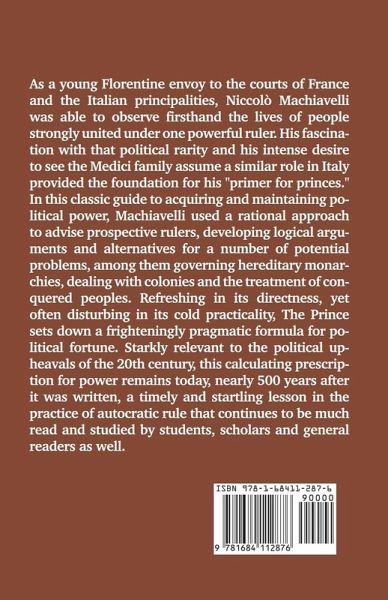 As a young Florentine envoy to the courts of France and the Italian principalities, Niccolò Machiavelli was able to observe firsthand the lives of people strongly united under one powerful ruler. His fascination with that political rarity and his intense desire to see the Medici family assume a similar role in Italy provided the foundation for his "primer for princes." In this classic guide to acquiring and maintaining political power, Machiavelli used a rational approach to advise prospective rulers, developing logical arguments and alternatives for a number of potential problems, among them governing hereditary monarchies, dealing with colonies and the treatment of conquered peoples. Refreshing in its directness, yet often disturbing in its cold practicality, The Prince sets down a frighteningly pragmatic formula for political fortune. Starkly relevant to the political upheavals of the 20th century, this calculating prescription for power remains today, nearly 500 years after it was written, a timely and startling lesson in the practice of autocratic rule that continues to be much read and studied by students, scholars and general readers as well.