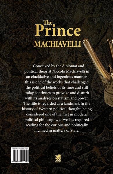 Conceived by the diplomat and political theorist Niccolò Machiavelli in an elucidative and ingenious manner, this is one of the works that challenged the political beliefs of its time and still today continues to provoke and disturb with its analyses on statism and power. The title is regarded as a landmark in the history of Western political thought, being considered one of the first in modern political philosophy, as well as required reading for the curious and politically inclined in matters of State.