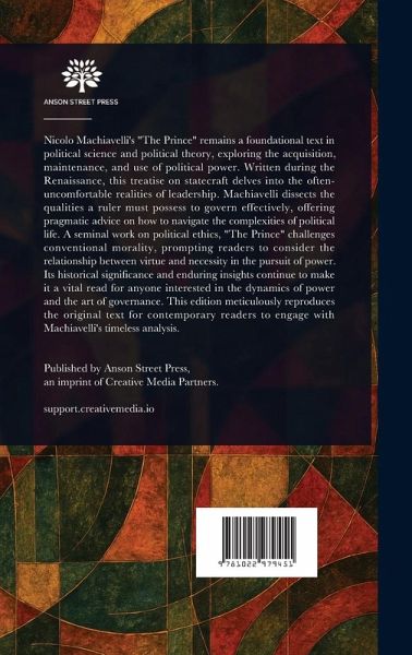 Nicolo Machiavelli's "The Prince" remains a foundational text in political science and political theory, exploring the acquisition, maintenance, and use of political power. Written during the Renaissance, this treatise on statecraft delves into the often-uncomfortable realities of leadership. Machiavelli dissects the qualities a ruler must possess to govern effectively, offering pragmatic advice on how to navigate the complexities of political life. A seminal work on political ethics, "The Prince" challenges conventional morality, prompting readers to consider the relationship between virtue and necessity in the pursuit of power. Its historical significance and enduring insights continue to make it a vital read for anyone interested in the dynamics of power and the art of governance. This edition meticulously reproduces the original text for contemporary readers to engage with Machiavelli's timeless analysis. This work has been selected by scholars as being culturally important, and is part of the knowledge base of civilization as we know it. This work is in the public domain in the United States of America, and possibly other nations. Within the United States, you may freely copy and distribute this work, as no entity (individual or corporate) has a copyright on the body of the work. Scholars believe, and we concur, that this work is important enough to be preserved, reproduced, and made generally available to the public. We appreciate your support of the preservation process, and thank you for being an important part of keeping this knowledge alive and relevant.