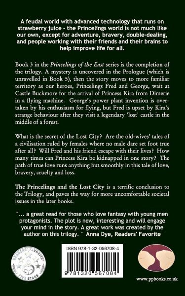 In book 3 of the Princelings of the East series, Fred has made a commitment to his true love, Kira, but must win her father's approval. George, meanwhile, is near to fulfilling his destiny, but gets sidetracked by the arrival of a new flying machine. A simple journey to introduce Kira to their home castle turns into a case of kidnap, mistaken identity, heartache, and the discovery of a totalitarian society hidden in the forest. This widely acclaimed sequel will delight lovers of the series to date, but it stands alone as an adventure mystery with two honourable and strong girl protagonists, as well as our kind and clever princelings. It's suitable for readers aged 10 and upwards, with perhaps a little parental guidance at times.
