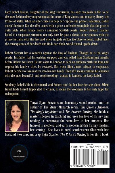 Book Three of the Stuart Monarch series. Lady Isobel Broune, daughter of the king's inquisitor, has only two goals in life: to be the most fashionable young woman at the court of King James, and to marry Henry, the Prince of Wales. When an offer comes to help her capture the prince's attention, Isobel doesn't hesitate. But the offer comes with a price, and Isobel soon finds that the price is quite high. When Prince Henry's annoying Scottish cousin, Robert Stewart, catches Isobel in a suspicious situation, not only does he pose a threat to her chances with the prince but also with the law. And when tragedy strikes too close to home, Isobel faces the consequences of her deeds and finds her whole world turned upside down. Robert Stewart has a vendetta against the king of England. Though he is the king's cousin, his father had his earldom stripped and was exiled from Scotland just months before Robert was born. He has come to London to seek an audience with the king and request his family's titles be restored. But when King James refuses to cooperate, Robert decides to take matters into his own hands. Even if it means ruining his chances with the most beautiful-and condescending-woman in London, the Lady Isobel. Suddenly Isobel's life is threatened, and Robert can't let her face her sins alone. When Isobel finds herself implicated in crimes, it seems the Scotsman is her only hope for redemption.