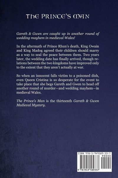In the aftermath of Prince Rhun's death, King Owain and King Madog agreed their children should marry as a way to seal the peace between them. Two years later, the wedding date has finally arrived, though relations between the two kingdoms have improved only to the extent that they aren't actually at war. So when an innocent falls victim to a poisoned dish, even Queen Cristina is so desperate for the event to take place that she begs Gareth and Gwen to head off another round of murder--and wedding mayhem--in medieval Wales. The Prince's Man is the thirteenth Gareth & Gwen Medieval Mystery. Complete Series reading order: The Good Knight, The Uninvited Guest, The Fourth Horseman, The Fallen Princess, The Unlikely Spy, The Lost Brother, The Renegade Merchant, The Unexpected Ally, The Worthy Soldier, The Favored Son, The Viking Prince, The Irish Bride, The Prince's Man. Also The Bard's Daughter (prequel novella).