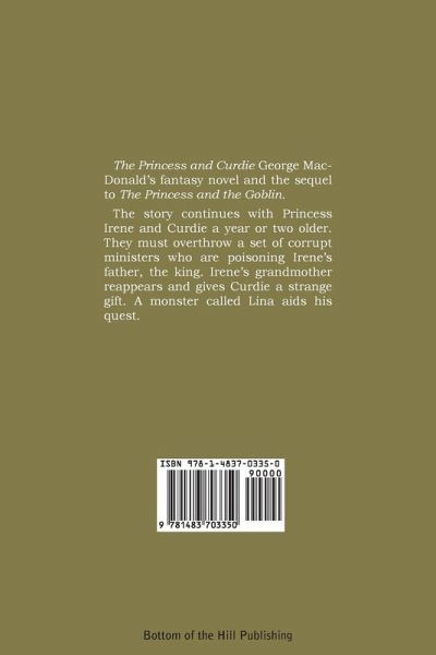 The Princess and Curdie George MacDonald's fantasy novel and the sequel to The Princess and the Goblin. The story continues with Princess Irene and Curdie a year or two older. They must overthrow a set of corrupt ministers who are poisoning Irene's father, the king. Irene's grandmother reappears and gives Curdie a strange gift. A monster called Lina aids his quest.