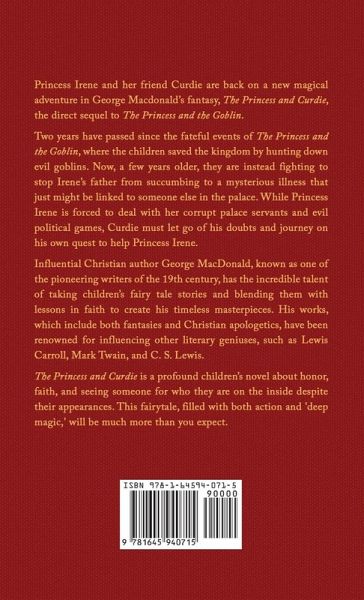 Princess Irene and her friend Curdie are back on a new magical adventure in George Macdonald’s fantasy, The Princess and Curdie, the direct sequel to The Princess and the Goblin. Two years have passed since the fateful events of The Princess and the Goblin, where the children saved the kingdom by hunting down evil goblins. Now, a few years older, they are instead fighting to stop Irene’s father from succumbing to a mysterious illness that just might be linked to someone else in the palace. While Princess Irene is forced to deal with her corrupt palace servants and evil political games, Curdie must let go of his doubts and journey on his own quest to help Princess Irene. Influential Christian author George MacDonald, known as one of the pioneering writers of the 19th century, has the incredible talent of taking children’s fairy tale stories and blending them with lessons in faith to create his timeless masterpieces. His works, which include both fantasies and Christian apologetics, have been renowned for influencing other literary geniuses, such as Lewis Carroll, Mark Twain, and C. S. Lewis. The Princess and Curdie is a profound children’s novel about honor, faith, and seeing someone for who they are on the inside despite their appearances. This fairytale, filled with both action and 'deep magic,' will be much more than you expect.