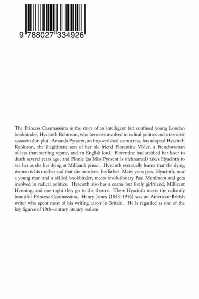 The Princess Casamassima is the story of an intelligent but confused young London bookbinder, Hyacinth Robinson, who becomes involved in radical politics and a terrorist assassination plot. Amanda Pynsent, an impoverished seamstress, has adopted Hyacinth Robinson, the illegitimate son of her old friend Florentine Vivier, a Frenchwoman of less than sterling repute, and an English lord. Florentine had stabbed her lover to death several years ago, and Pinnie (as Miss Pynsent is nicknamed) takes Hyacinth to see her as she lies dying at Millbank prison. Hyacinth eventually learns that the dying woman is his mother and that she murdered his father. Many years pass. Hyacinth, now a young man and a skilled bookbinder, meets revolutionary Paul Muniment and gets involved in radical politics. Hyacinth also has a coarse but lively girlfriend, Millicent Henning, and one night they go to the theatre. There Hyacinth meets the radiantly beautiful Princess Casamassima... Henry James (1843-1916) was an American-British writer who spent most of his writing career in Britain. He is regarded as one of the key figures of 19th-century literary realism.