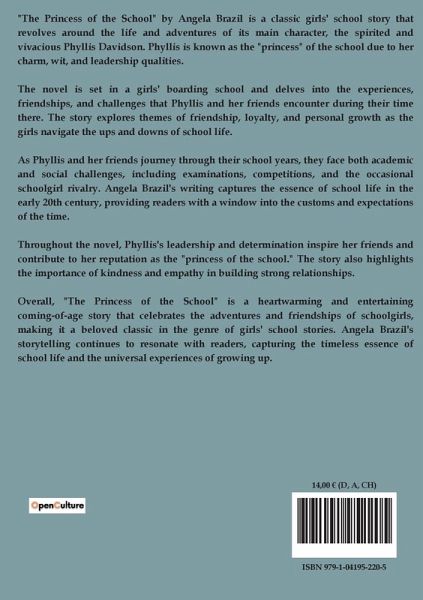"The Princess of the School" by Angela Brazil is a captivating narrative that intertwines the lives of schoolgirls with the complexities of family heritage. The story begins with the Ingleton family, particularly focusing on Lilias and Dulcie, who are students at Chilcombe Hall. The school, known for its beautiful surroundings and emphasis on the "beauty cult," provides a nurturing environment for its pupils. The narrative captures the excitement and camaraderie among the girls, especially during events like the Valentine party, where they engage in writing anonymous valentines and telling fortunes, showcasing their youthful innocence and creativity. The plot thickens as the Ingleton siblings return home for the holidays, where Everard, the eldest, assumes the role of the young squire, believing himself to be the heir to the family estate, Cheverley Chase. However, a chance encounter with the family solicitor, Mr. Bowden, hints at a hidden family secret involving their Uncle Tristram and a cousin named Leslie, potentially altering Everard's expectations of inheritance. The story takes a dramatic turn when Everard, in a bid to assert his independence, takes his siblings on an unauthorized joy-ride in their grandfather's car, leading to a series of misadventures. The car breaks down on a remote moor, forcing the siblings to seek shelter in a nearby town, which results in a stern reprimand from their grandfather. This incident, coupled with the revelation of a possible rival heir, sets the stage for a deeper exploration of family dynamics and the responsibilities that come with privilege. Angela Brazil's narrative is a blend of school life, family drama, and the journey of self-discovery, capturing the essence of early 20th-century youth and the societal expectations placed upon them.