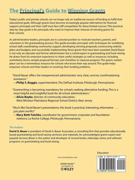 Today's public and private schools can no longer rely on traditional sources of funding to fulfill their educational goals. Although grants have become increasingly popular alternatives for financial support, principals and their staff must face stiff competition for these limited sources. This practical, step-by-step guide is for principals who want to improve their chances of winning grants for their schools. As administrative leaders, principals are in a pivotal position to motivate teachers, parents, and volunteers in the grantseeking process. This guide provides principals with techniques for mobilizing school staff, coordinating community support, developing winning proposals, constructing realistic plans and budgets, and successfully implementing those grants that have been awarded. David Bauer is not only an educator and former administrator but a noted expert in grantseeking and fund-raising. He draws from his extensive experience to share useful strategies as well as resources, including worksheets, forms, sample proposal formats, and checklists to measure progress. The grants marketplace can be a tremAndous resource for schools who know their way around. This guide helps empower schools and their leaders in resolving their funding problems.