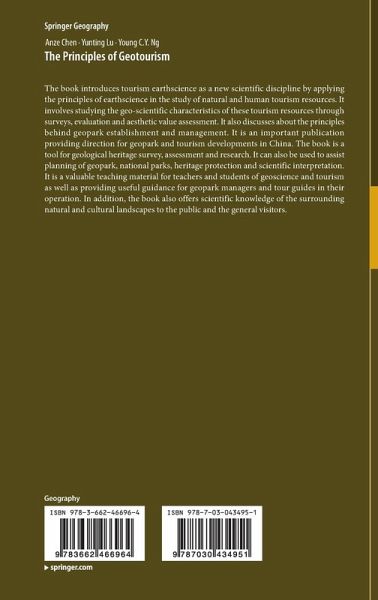 Research Objects, Tasks and Historical Development of Tourism.- Role of Tourism Earthscience in Tourism Development.- Basic Formation Conditions of Natural Tourism Resources.- Earthscientific Formation Conditions of Cultural Tourism Resources.- Earthscientific Characteristics of Tourism Resources.- Principles of Aesthetic Appreciation of Sceneries.- Survey and Evaluation of Tourism Resources.- Tourism Development Planning.- Protection of Tourism Resources and Tourism Environments.- Geopark.- Prospects of Tourism Earthscience.