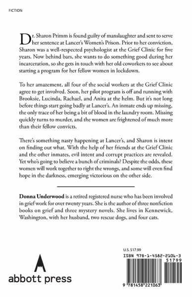 Dr. Sharon Primm is found guilty of manslaughter and sent to serve her sentence at Lancer's Women's Prison. Prior to her conviction, Sharon was a well-respected psychologist at the Grief Clinic for five years. Now behind bars, she wants to do something good during her incarceration, so she gets in touch with her old coworkers to see about starting a program for her fellow women in lockdown. To her amazement, all four of the social workers at the Grief Clinic agree to get involved. Soon, her pilot program is off and running with Brooksie, Lucinda, Rachael, and Anita at the helm. But it's not long before things start going badly at Lancer's. An inmate ends up missing, the only trace of her being a bit of blood in the laundry room. Missing quickly turns to murder, and the women are frightened of much more than their fellow convicts. There's something nasty happening at Lancer's, and Sharon is intent on finding out what. With the help of her friends at the Grief Clinic and the other inmates, evil intent and corrupt practices are revealed. Yet who's going to believe a bunch of criminals? Despite the odds, these women will work together to right the wrongs, and some will even find hope in the darkness, emerging victorious on the other side.