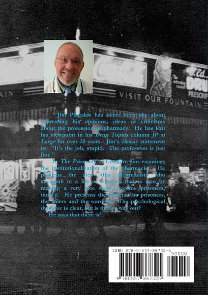 The Prisoners of Comfort examines the soul-crushing working conditions that are tolerated in 21st Century Retail Pharmacy. These conditions can be dehumanizing and some say are worse than the conditions in a modern factory. Mister Plagakis has never been shy about expressing his opinions, ideas or criticisms about the job and profession of pharmacy. He has lent his viewpoint in his Drug Topics column JP at Large for over 20 years. Jim's classic statement is: "It's the job, stupid. The profession is just fine." In The Prisoners of Comfort, Jim examines the institutionalization of the pharmacist. He presents the view that pharmacists who succumb to a life of comfort, that is won by making a very nice wage, become prisoners, indeed. He presents the players: the prisoners, the jailers and the wardens. The psychological dynamic is clear, but is there a way out? He says that there is!