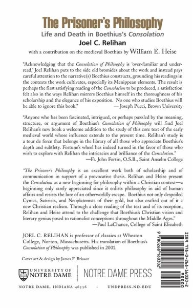 The Roman philosopher Boethius (c. 480-524) is best known for the Consolation of Philosophy, one of the most frequently cited texts in medieval literature. In the Consolation, an unnamed Boethius sits in prison awaiting execution when his muse Philosophy appears to him. Her offer to teach him who he truly is and to lead him to his heavenly home becomes a debate about how to come to terms with evil, freedom, and providence. The conventional reading of the Consolation is that it is a defense of pagan philosophy; nevertheless, many readers who accept this basic argument find that the ending is ambiguous and that Philosophy has not, finally, given the prisoner the comfort she had promised. In The Prisoner's Philosophy, Joel C. Relihan delivers a genuinely new reading of the Consolation. He argues that it is a Christian work dramatizing not the truths of philosophy as a whole, but the limits of pagan philosophy in particular. He views it as one of a number of literary experiments of late antiquity, taking its place alongside Augustine's Confessions and Soliloquies as a spiritual meditation, as an attempt by Boethius to speak objectively about the life of the mind and its relation to God. Relihan discerns three fundamental stories intertwined in the Consolation: an ironic retelling of Plato's Crito, an adaptation of Lucian's Jupiter Confutatus, and a sober reduction of Job to a quiet dialogue in which the wounded innocent ultimately learns wisdom in silence. Relihan's claim that Boethius's text was written as a Menippean satire does not rest merely on identifying a mixture of disparate literary influences on the text, or on the combination of verse and prose or of fantasy and morality. More important, Relihan argues, Boethius deliberately dramatizes the act of writing about systematic knowledge in a way that calls into question the value of that knowledge. Philosophy's attempt to lead an exile to God's heaven is rejected; the exile comes to accept the value of the phenomenal world, and theology replaces philosophy to explain the place of human beings in the order of the world. Boethius Christianizes the genre of Menippean satire, and his Consolation is a work about humility and prayer.