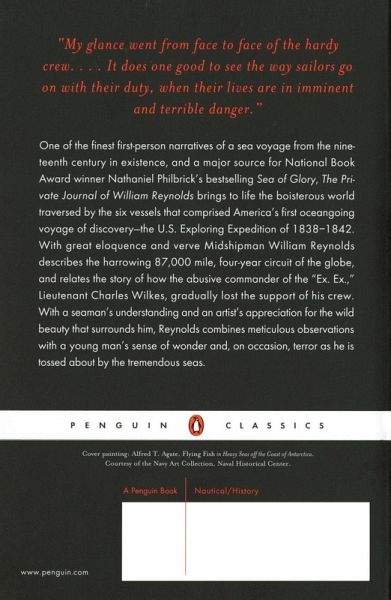 One of the finest nineteenth-century first-person narratives of a sea voyage in existence, and a principle source for Sea of Glory, The Private Journal of William Reynolds brings to life the boisterous world traversed by the six vessels that comprised America's first ocean-going voyage of discovery, the U.S. Exploring Expedition of 1838-1842. With great eloquence and verve Midshipman William Reynolds describes the harrowing 87,000-mile, four-year circuit of the globe, and relates the story of how the abusive commander of the Ex. Ex., Lieutenant Charles Wilkes, gradually lost the support of his crew. With a seaman's understanding and an artist's appreciation for the wild beauty that surrounds him, the Journal is a tour de force combining meticulous observations with a young man's sense of wonder and, on occasion, terror as he is tossed about by the tremendous seas.