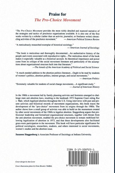 In this highly-praised analysis of the controversial pro-choice movement, Suzanne Staggenborg traces the development of the movement from its origins through the 1980s. She shows how a small group of activists were able to build on the momentum created by other social movements of the 1960s to win their cause-the legalization of abortion in 1973-and argues that professional leadership and formal organizational structures, together with threats from the anti-abortion movement and grass-roots support, enabled the pro-choice movement to remain an active force even after their primary goal had been achieved.