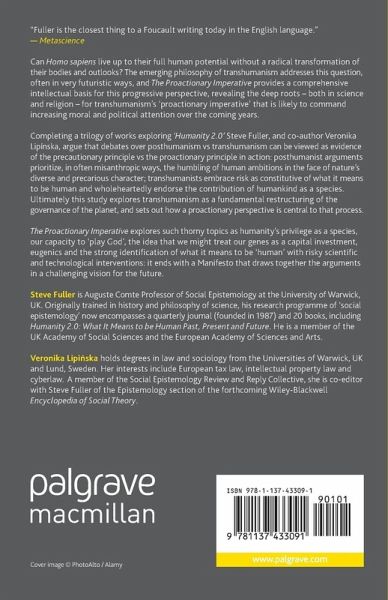 The Proactionary Imperative debates the concept of transforming human nature, including such thorny topics as humanity's privilege as a species, our capacity to 'play God', the idea that we might treat our genes as a capital investment, eugenics and what it might mean to be 'human' in the context of risky scientific and technological interventions.