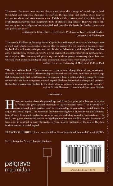 "Herreros's Problem of Forming Social Capital is a well-argued analysis of the importance of trust and voluntary associations in civic life. His argument is not mine, but this is an engaging book that will make an important contribution to debates on social capital. More so than almost anyone else, Herreros presents a clear argument about the underlying mechanisms of social capital. His reasoning will play a key role in the ongoing controversy about how and whether trust and membership in civic associations make democracy work better." - Eric Uslaner, University of Maryland, College Park